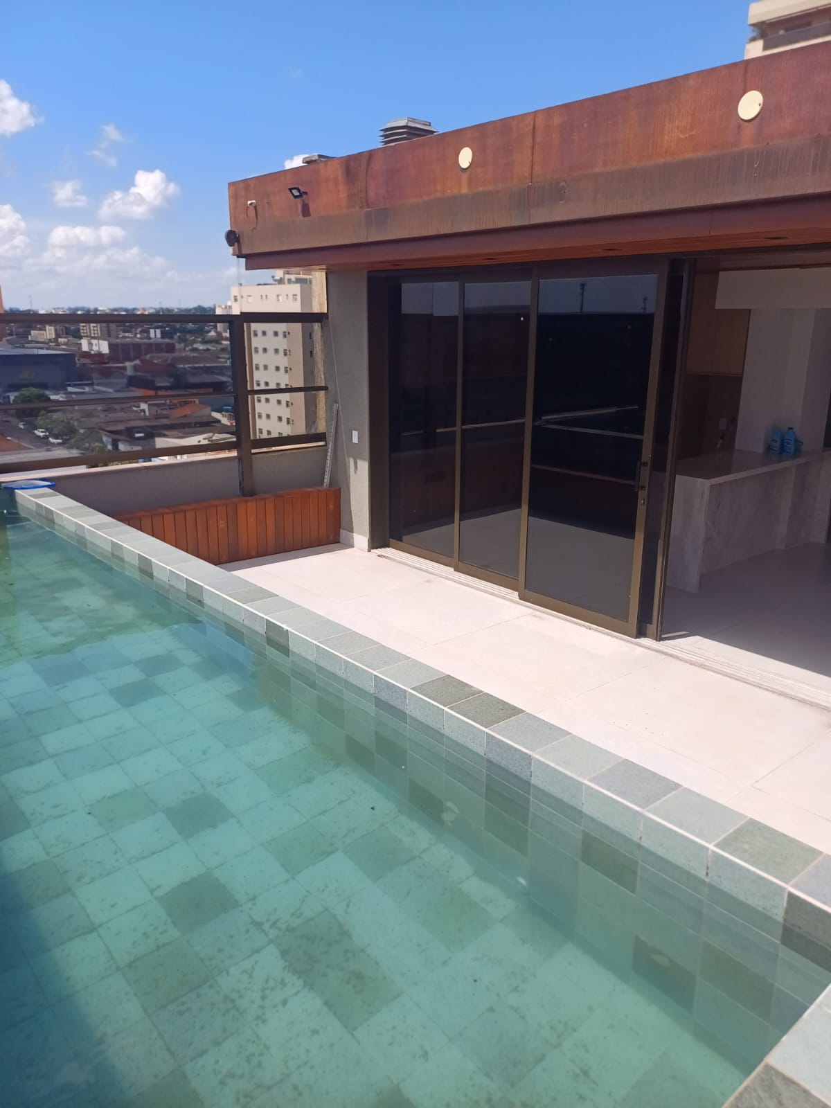 Localizado na cobertura com um piscina refrescante ao lado da churrasqueira, um lazer e área de convívio social muito importante.